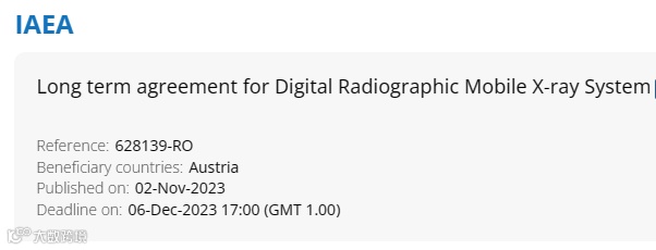 国际原子能机构(IAEA)为采购移动数字X光系统 建立长期协议(7年)