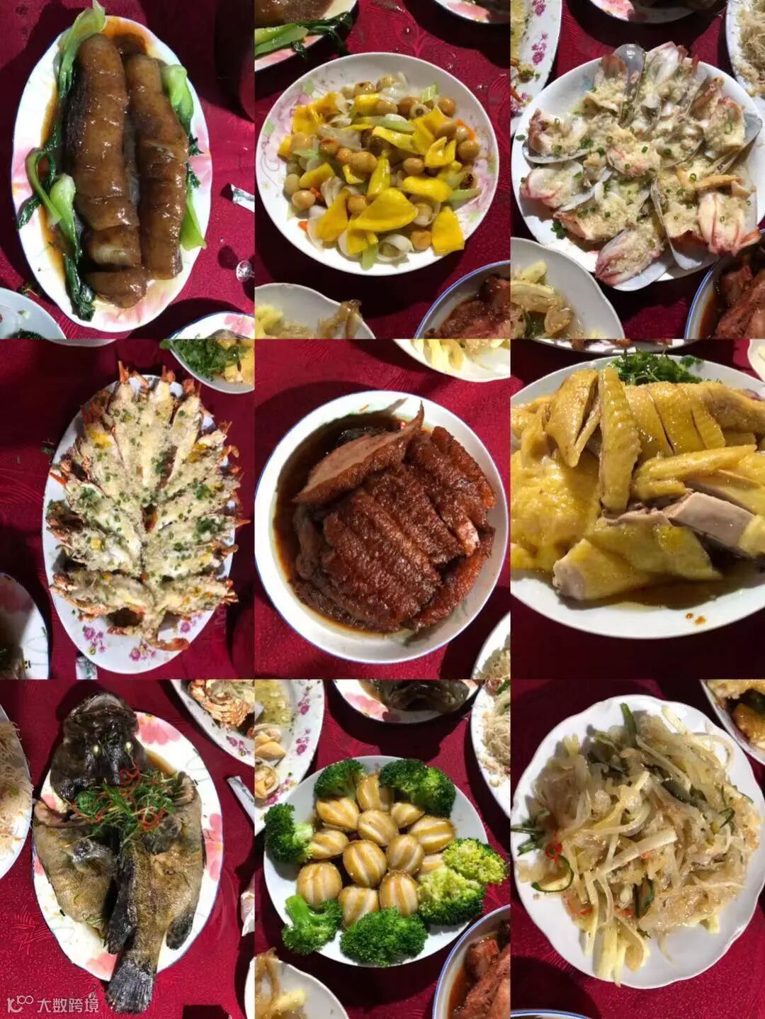 上桌各种丰富的年例菜:鲍参翅肚、龙虾