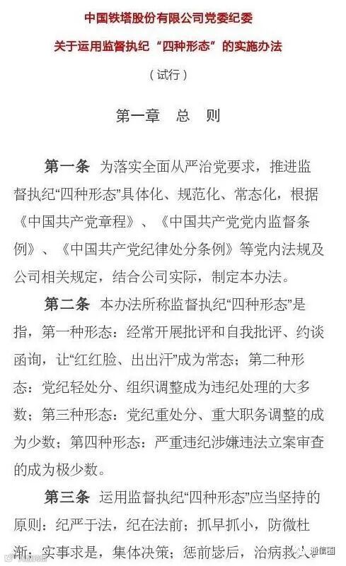 铁塔内部发布红头文件,公布“四种形态”实施办法