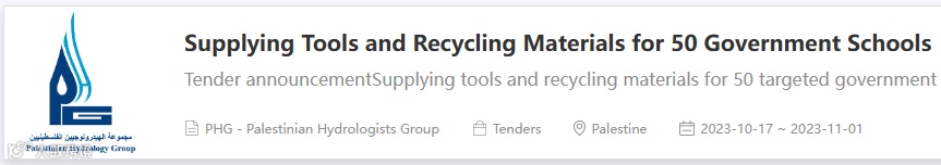 1. 在由德国联邦经济合作与发展部资助、世界宣明会和巴勒斯坦水文学家小组实施的约旦河西岸 “建设复原力,确保水和卫生系统的预防性卫生,并降低C区学校一级的灾害风险” 项目内,巴勒斯坦水文学家小组与教育部合作,宣布进行投标,为分布在西岸9个省的9个教育局的50所政府学校提供工具和回收材料。