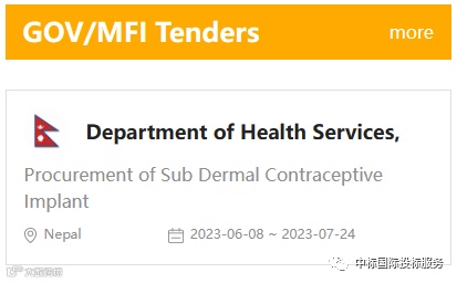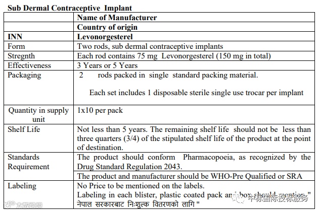 尼泊尔加德满都卫生服务管理部 为采购皮下避孕植入物(左炔诺孕酮) 进行国际招标