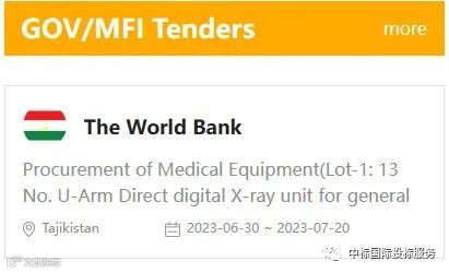 世界银行(The World Bank)支持塔吉克斯坦紧急COVID-19项目 采购U型臂数字X光装置和环氧乙烷灭菌器