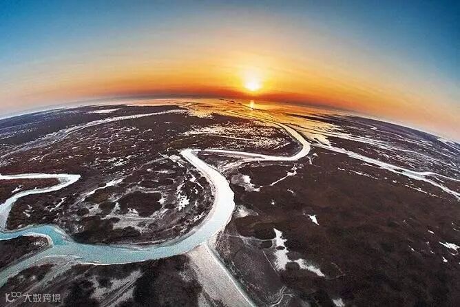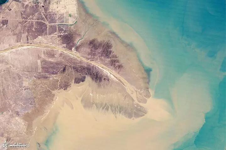 随着黄河流动到下游地区,水流会逐渐减慢,水中携带的泥沙也会缓慢的沉淀并积累起来,因此,黄河入海口也会“生长”。1989年,美国宇航局(NASA)的卫星监测了黄河在渤海入海口的样子,卫星的自然彩色图像显示了,黄河含沙量巨大的河水向东南汇入渤海,黄河泥沙沉积起一片暗黄的三角洲。同时,含沙量巨大的河水与蓝色的海水也产生了“泾渭分明”的奇观。