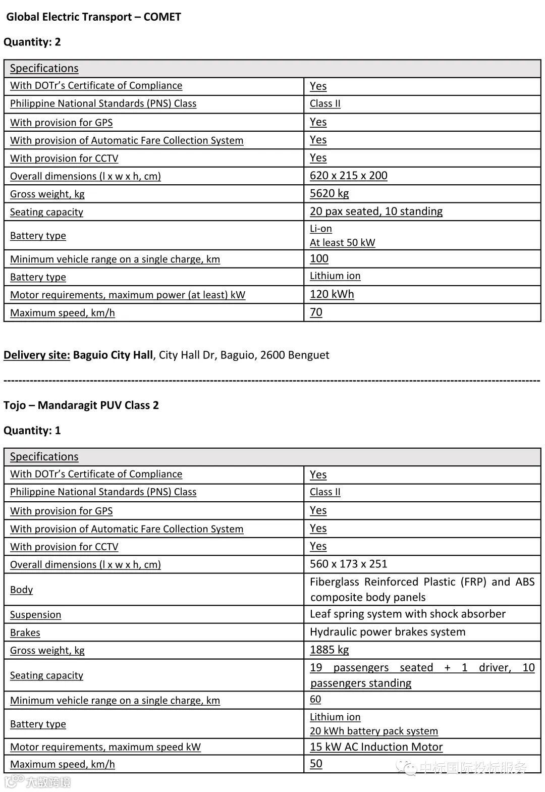 计划采购这些电动汽车对于UNDP正在进行的城市公共交通服务向电动汽车转变的示范是必要的。UNDP设想将这些电动汽车转移到菲律宾选定的交通实体,用于运营常规城市公共交通服务。