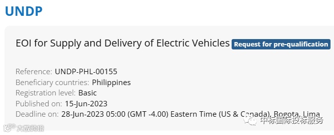 UNDP邀请潜在公司最迟于2023年6月28日表达对上述采购的兴趣。