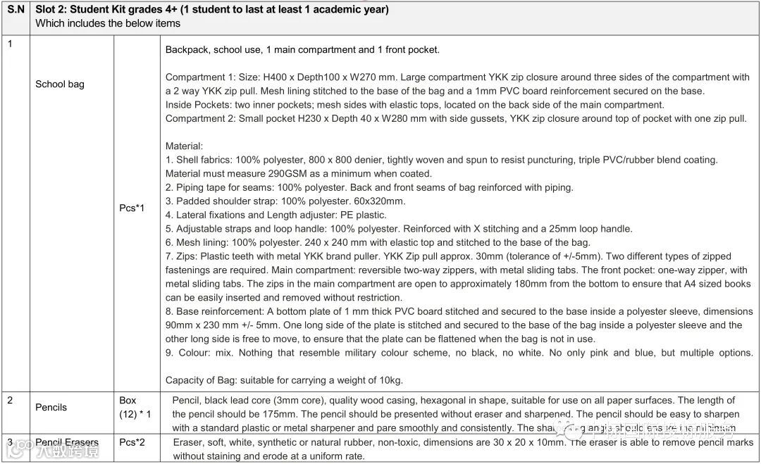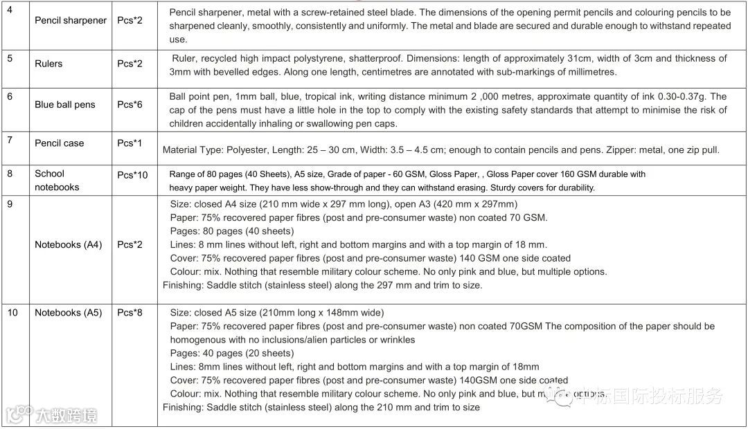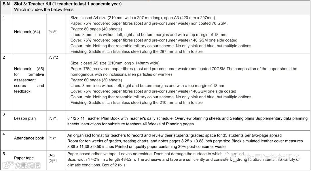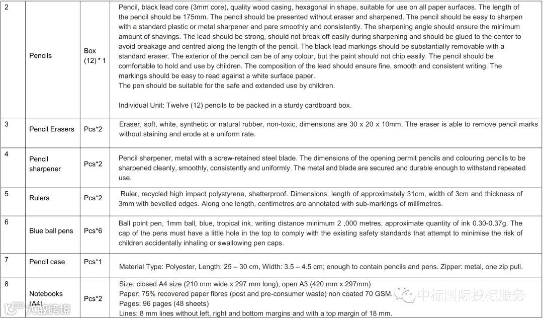 本项目包括学生用品包、教师用品包和课堂用品包三种产品;