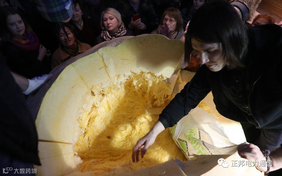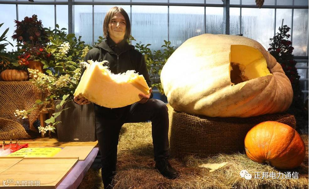 当地时间2017年10月16日,俄罗斯莫斯科,俄罗斯心理学家种出432公斤南瓜,打破该国最大南瓜的记录,种出最大南瓜的Alexander Chusov现场切分南瓜与民众分享。