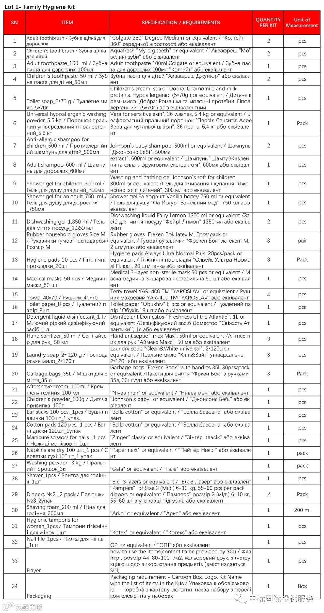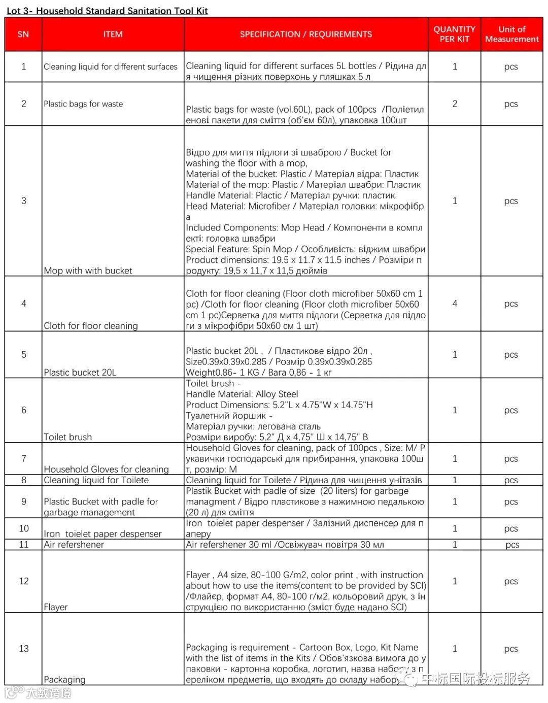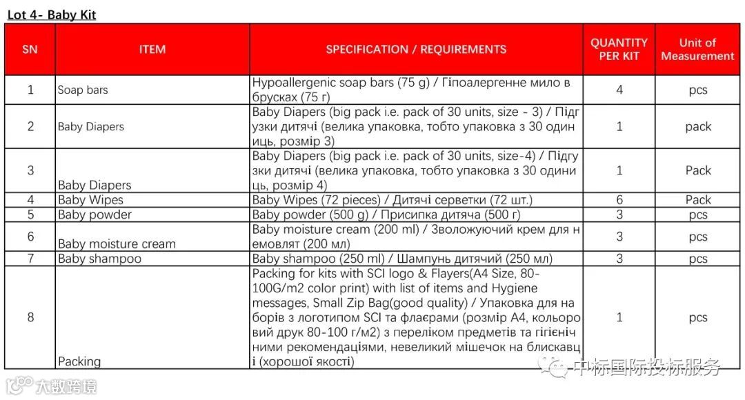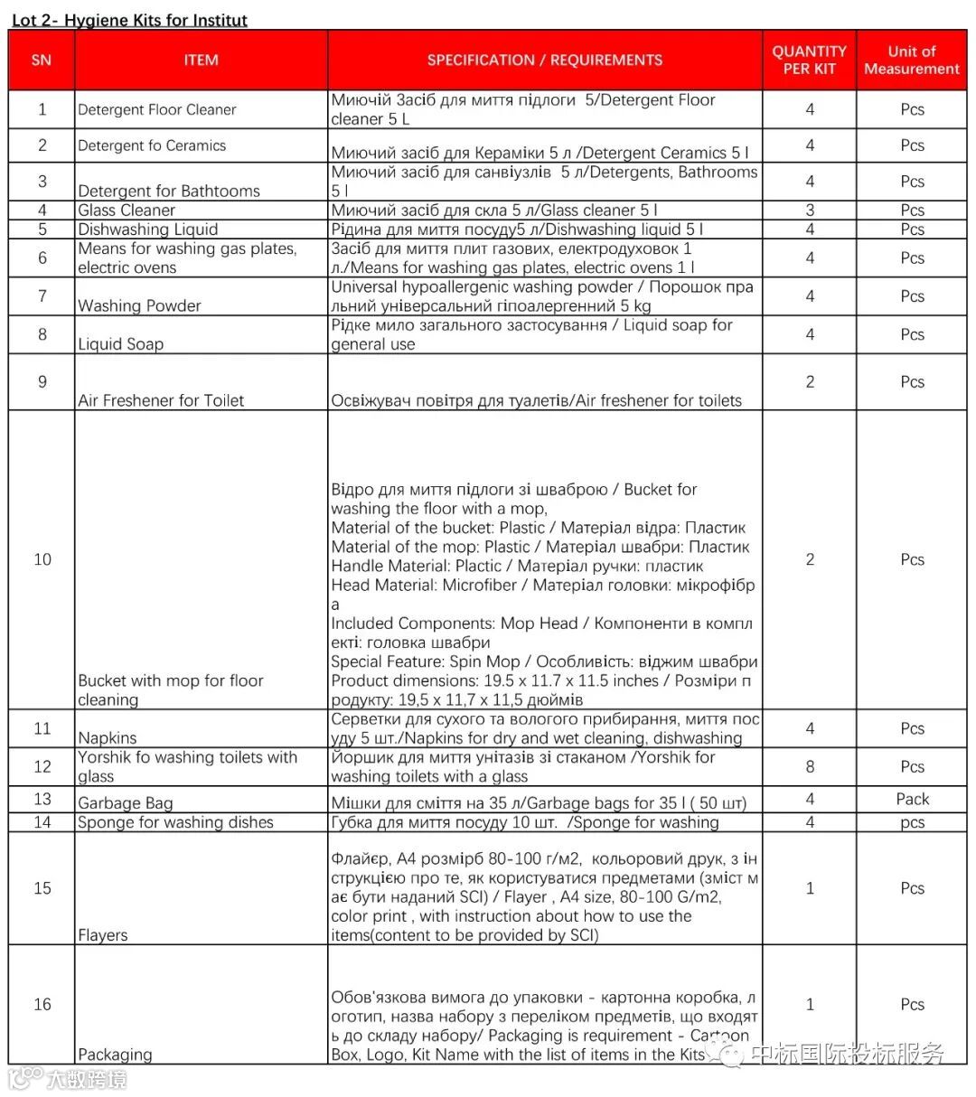 SCI乌克兰国家办事处正在就以下货物的供应进行招标: