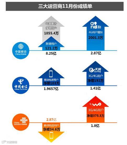 工信部及三大运营商发布11月用户发展情况