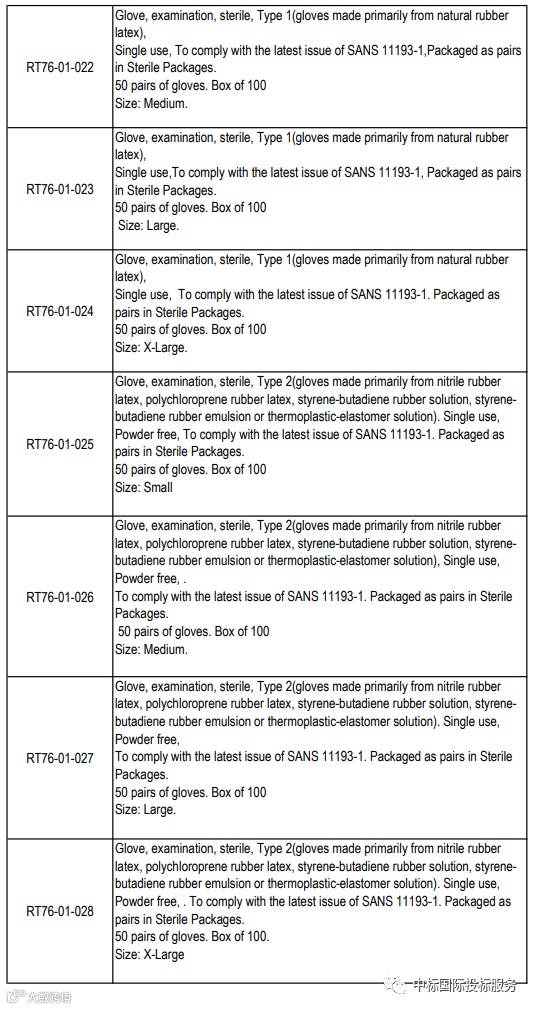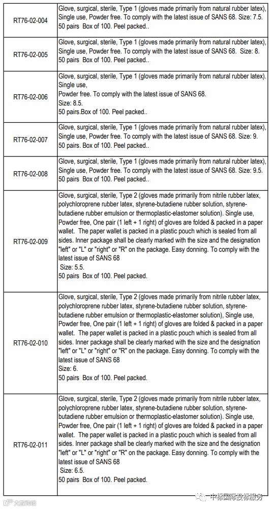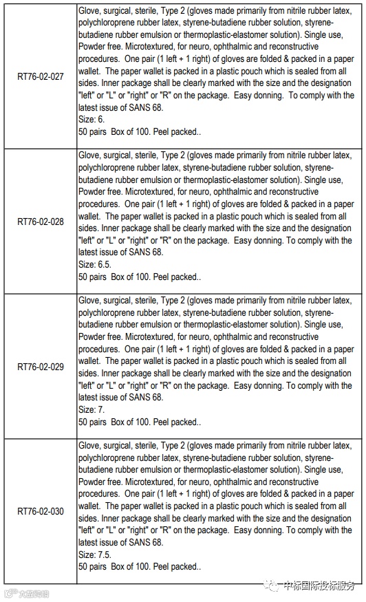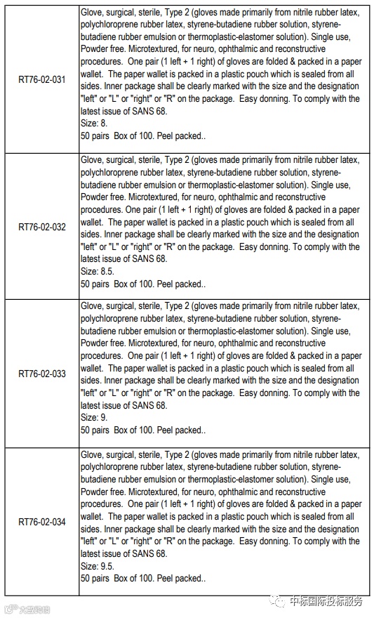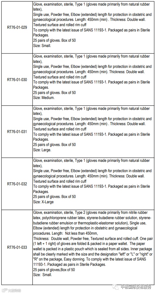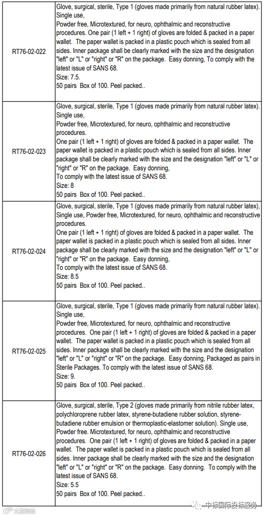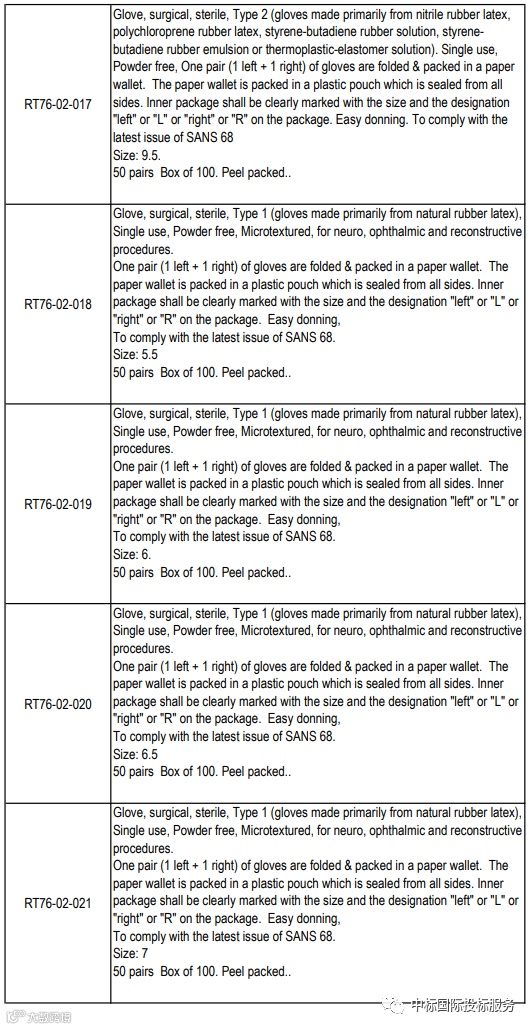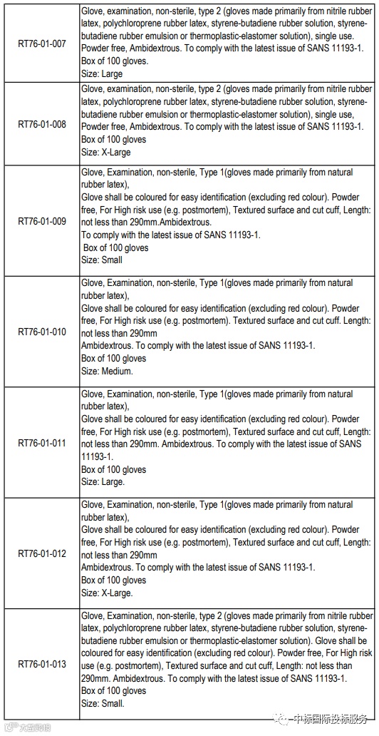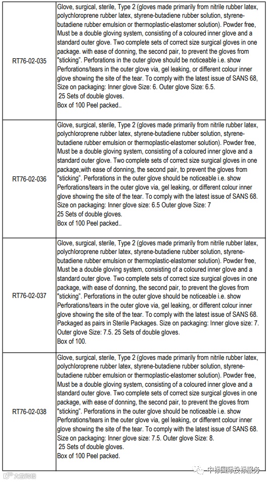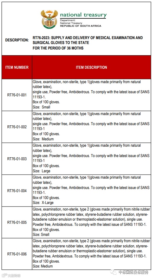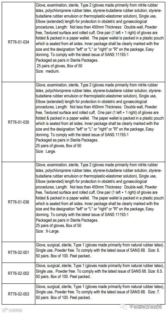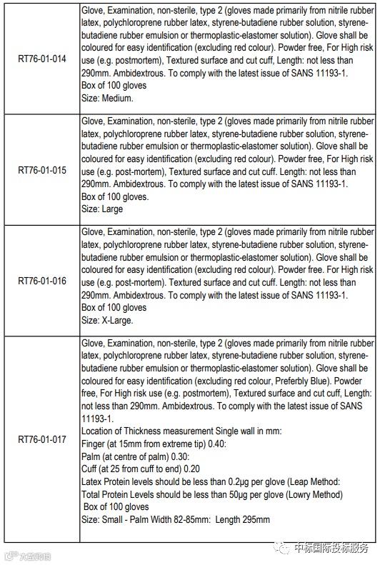 项目名称:在36个月内向国家提供和交付医用检查和外科手套