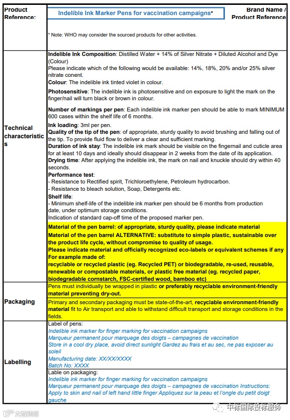 由于其在免疫接种中的核心作用,WHO正在寻求与 “不褪色墨水非灭菌马克笔”的供应商建立长期协议,以确保在活动期间适当的疫苗接种覆盖率。