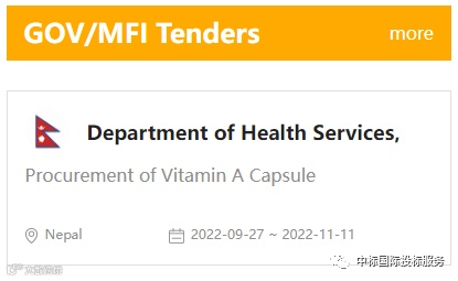 加德满都特库市卫生服务管理部邀请合格投标人根据国际竞争性招标-单阶段双信封方式,对维生素A胶囊的采购进行电子投标。