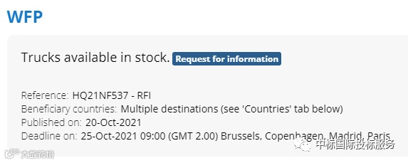 2. 位于意大利罗马的世界粮食计划署总部力求满足以下采购需求:在埃塞俄比亚部署长途卡车和拖车,以运输粮食和人道主义救援物资。
