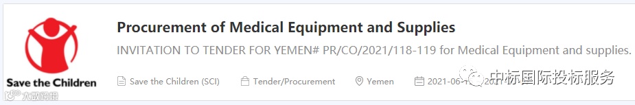 采购主体:国际救助儿童会(Save the Children)也门办公室