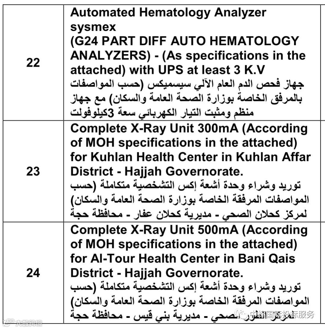 操作建议:该项目适于也门当地注册的投标人参加,注册主体无国籍限制,也门境外生产商可以提供产品的方式,间接参加投标。