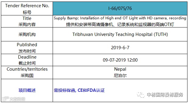 尼泊尔采购超声波雾化器,OT灯,胃镜和结肠镜机,微创脊柱工具等。