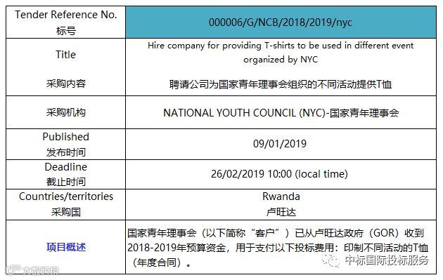 卢旺达采购T恤衫,药品和医疗设备,体育用品,办公文具,自行车,家用太阳能系统等。