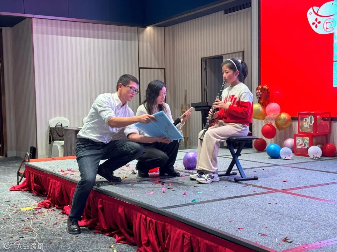 服务总监张总的女儿表演了扇子舞《雪龙呤》,大方地向大家展现了她娴熟的舞姿;秦总的女儿用单簧管演奏了《声声慢》,让在场的每一个人都沉浸在音乐的美妙之中。