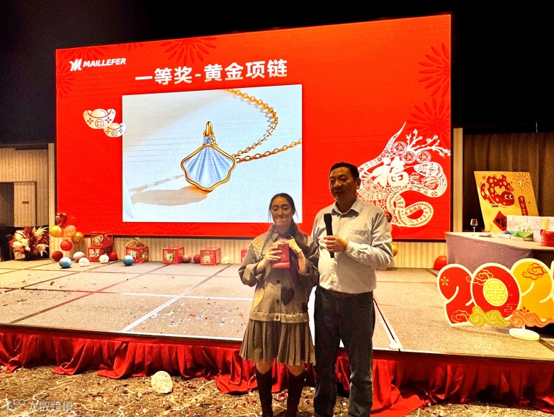 最令人惊喜的幸运抽奖环节在迎新晚宴的各项活动中穿插进行着,丰盛的奖品让每一位员工都充满了期待。最终公司的行政颜小姐获得幸运的一等奖。