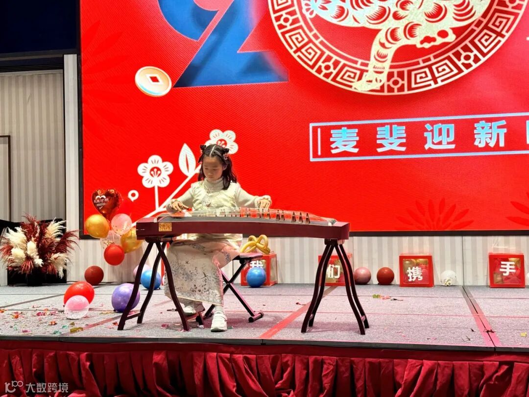 在这欢乐的氛围中,我们迎来了员工子女们精彩的才艺表演。管总的女儿以一曲古筝《金蛇狂舞》