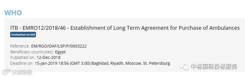 ITB - EMRO12/2018/46 - Establishment of Long Term Agreement for Purchase of Ambulances