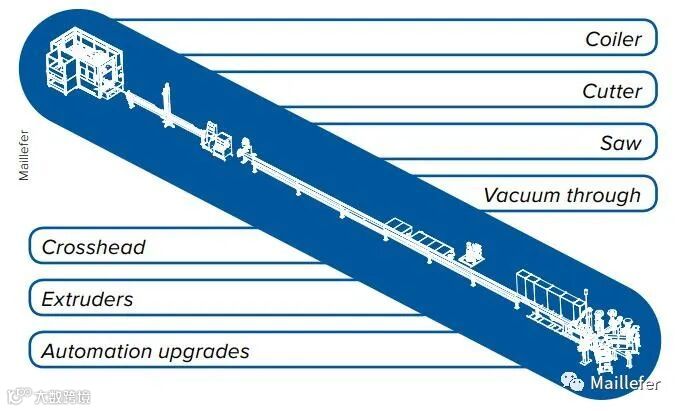 ★ Maillefer公司几十年来已经交付了数千条挤出生产线和单机。随着时间的推移,他们需要有效的方法来保持最高水平的运转。各台设备要么需要升级到最新的PLC、驱动器和电机,要么由于更高的效率或性能要求,甚至可能需要一个完全现代化的新单机。下面给出了您可能的以后最佳升级操作的一些想法。