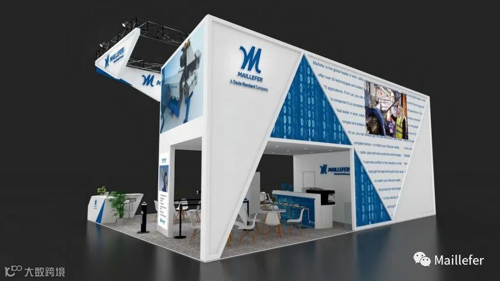 我们的展位是一个双层特装展位(靠近E1展馆的Gate 7号门),设计布局非常大气。展位上采用了许多三角元素,如部分展板、吊顶、接待台等呈现出斜形的设计,象征着我们在行业中的领先地位和开拓创新的精神。