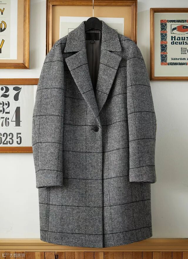 本款为近年流行的格纹羊毛大衣。面料柔软舒适,版型略带茧型。上身不显胖,优雅有女人味。低调的灰白格纹简约好搭配。偏暗的色调能很好的衬托内搭的衣物。偏大的翻领在视觉上有瘦脸效果。颜色有淡灰色和深灰色两种可选。