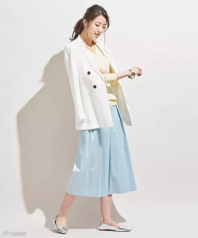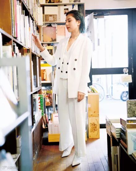 这次下装采用西装裤进行搭配,打造套装般精致唯美的风格。白西装的版型简约大方,单独拿来搭配效果也一定很好。可以内搭夏款的高领装,穿大敞口的内搭时再配上锁骨链也很美。是我的话下半身会搭配复古的白色长裙,最后配上白色跑鞋打造休闲感。