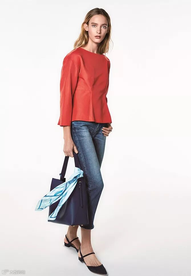 说到日本通勤装,很多上班族都会联想到西装,衬衫,直筒裤等相对来说比较偏正式风格的单品。但其实越来越多的日本公司对于通勤装的定义越来越倾向于正式和非正式中间的风格类型。本次23区品牌推荐的牛仔通勤搭配,上下同色系的牛仔搭配是此造型的重点。为了不让整体看起来过于休闲,外套选择相对来说较正式款的西装进行搭配。