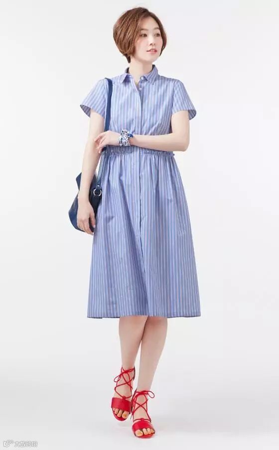 夏日经典的条纹加上颜色鲜艳的半身裙,在配上精美的编织包包,仿佛正在巴黎街边漫步一般,让人眼前一亮。