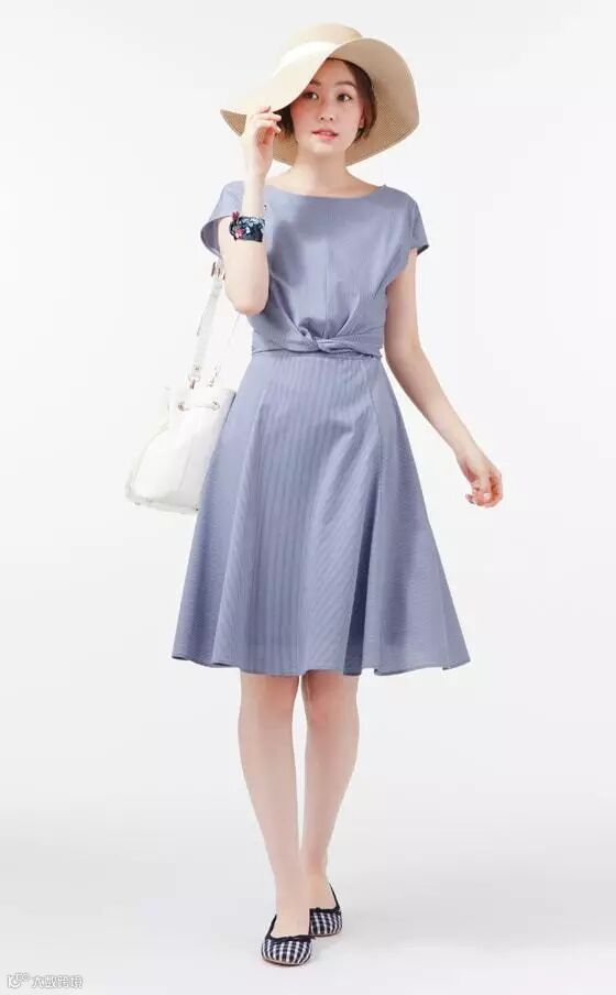 略带波西米亚风情的竖条纹连衣裙,搭配短款针织衫,再加上美美的草帽,让你立刻变的温柔又有女人味儿。