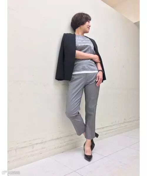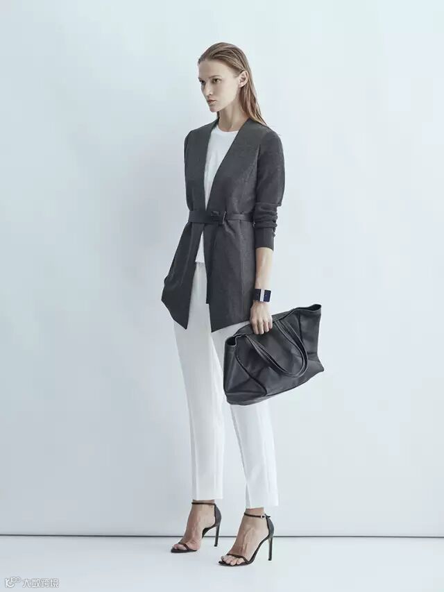 面料&设计:外套设计简洁有流线感,V领设计很有特色,九分裤面料富有垂感,能很好的修饰腿型。手环和拎包都是比较中性化的设计,非常适合通勤或各种正式场面的一套搭配。