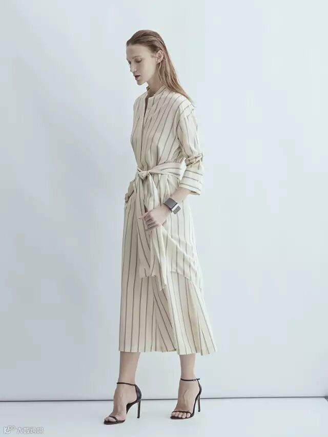 面料&设计:面料略有厚度,连衣裙的小立领设计非常有女人味,条纹印花经典时尚,可很好的搭配各种下装。阔腿裤柔软舒适,与连衣裙成套搭配非常时髦,通勤上班还是休闲度假都可穿着。