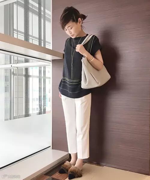 非常职业的一套搭配,外套简约的设计可内搭T恤衬衫,搭配手环和拎包让整个人看上去都干练又精神。
