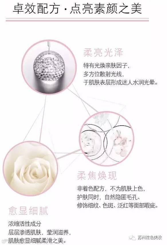 特有的光焕因子,多方位散射光线,肌肤表面犹如绽放水润光晕。非着色配方不伤肌肤,护肤同时,自然隐匿毛孔、修饰细纹、色斑、泛红、暗沉,缔造柔焦感无暇美艳肌,绽放素颜光采。