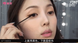 STEP14:涂睫毛膏的时候,也可以将上睫毛用黑色,下睫毛用棕色。