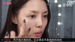 STEP5:我们涂粉底的时候,要从脸中间向外延展。