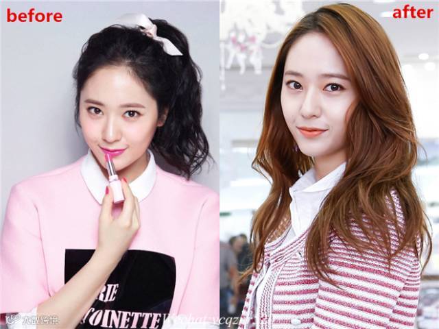 郑秀晶粉色妆虽然少女但是显得气色暗沉,但是换上了元气黄杏妆后,增添了亲和力,冰山美人也变得可爱起来了!