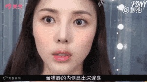 STEP16:然后涂上唇膏,不要涂得太向外,黄杏妆的整体感觉要让人显得很少女,感觉嫩嫩的样子。