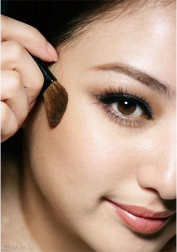 腮:肉桂色腮红斜扫颧骨位置。少量即可。