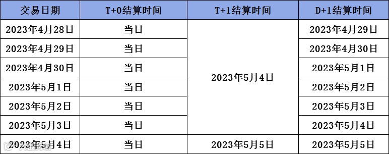 关于劳动节期间交易结算的具体安排如下: