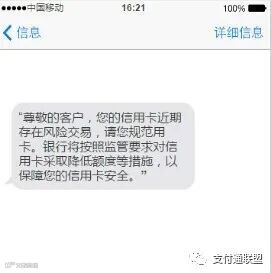 当持卡人使用信用卡消费后,就收到银行短信或电话警告,告知持卡人的卡片刷卡交易存在风险,请规范用卡等信息,则意味着持卡人已经被列在银行风控名单上了。持卡人后续用卡一定要谨慎,不然很可能会被降额或封卡。