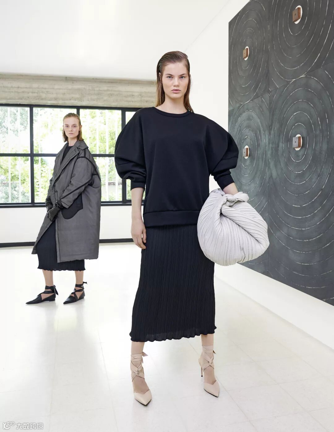 ▲ 在 Max Mara 2019早春秀场上,服装和手袋上的褶皱元素灵感 来源于Alberto Burri 的作品《Ferro》;