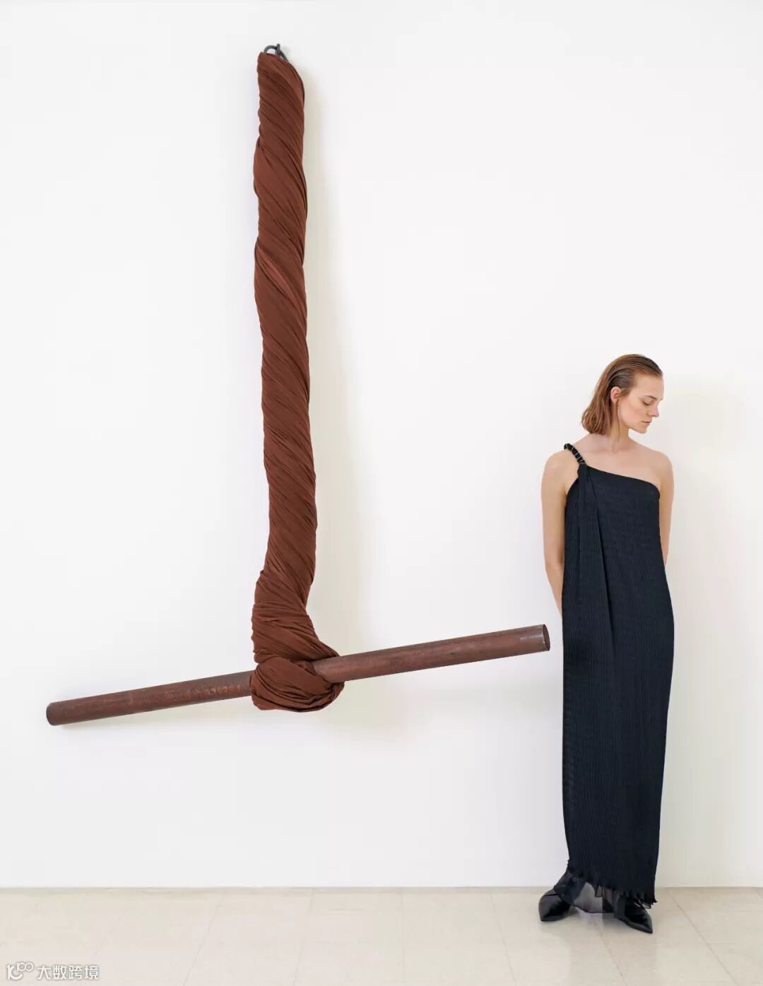 《拧》这一作品在20 世纪60 年代出现之初强调废旧、廉价、与精英主义对抗等身份标签,却在半个多世纪后的2015 年以640 万美元在佳士得拍卖会上落槌成交。而今,它更成为时装秀场上的灵感起源——Max Mara 近期发表的2019 年早春系列中,华美衣物上的褶皱、系带和编织都出于对艺术家Anselmo 以及以其为代表的意大利“贫穷艺术家”的致敬。时间的传承给与艺术作品让人想象不到的可能性,这样的一场时装秀也延展出了历史维度的观看视角,启发我们以当代的视角重新回看艺术史的源头。