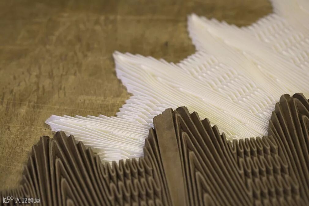 以纯手工艺辅以纸板模具以及蒸汽处理