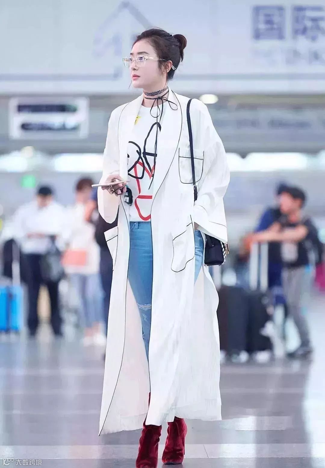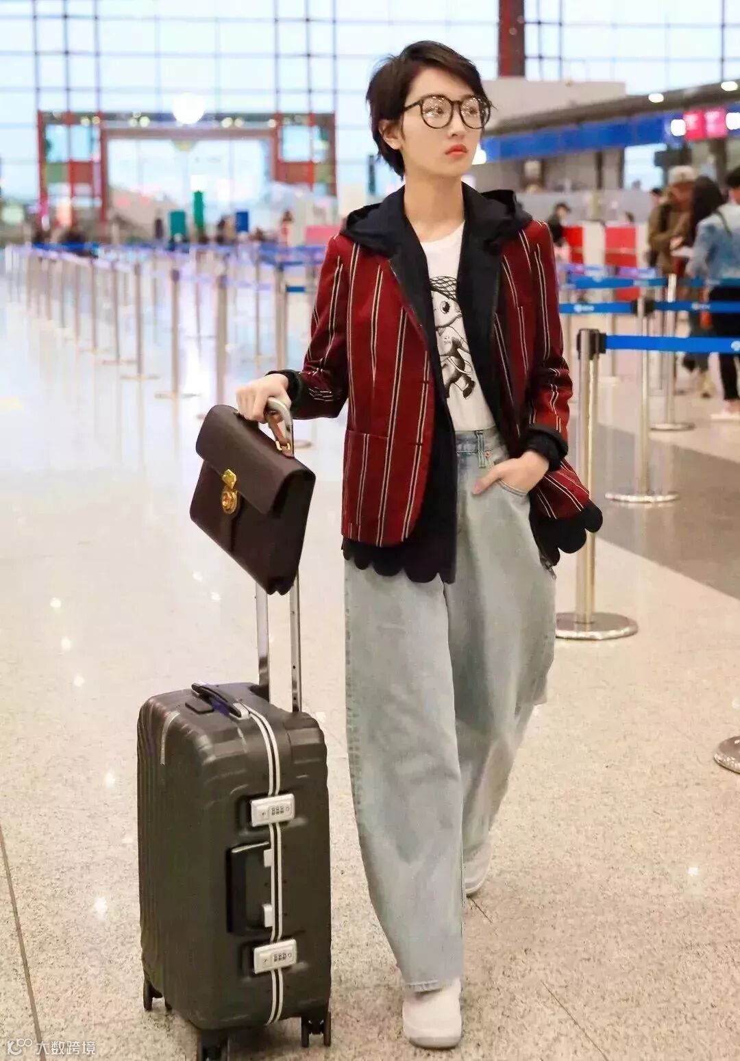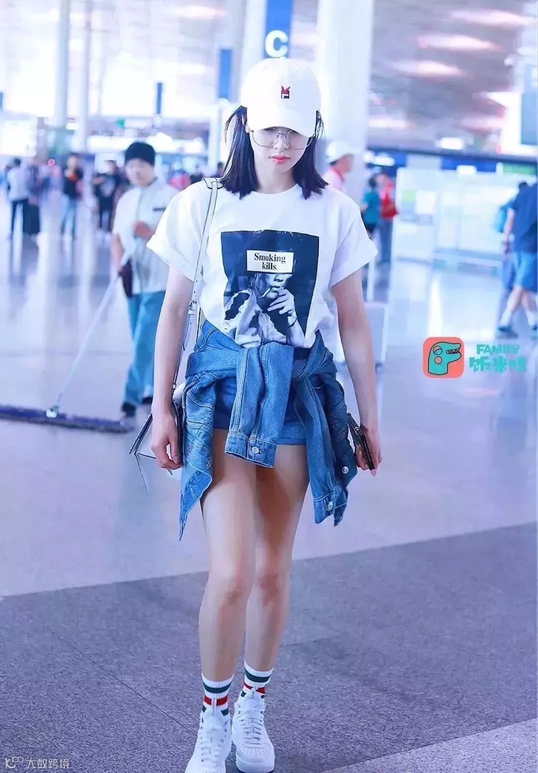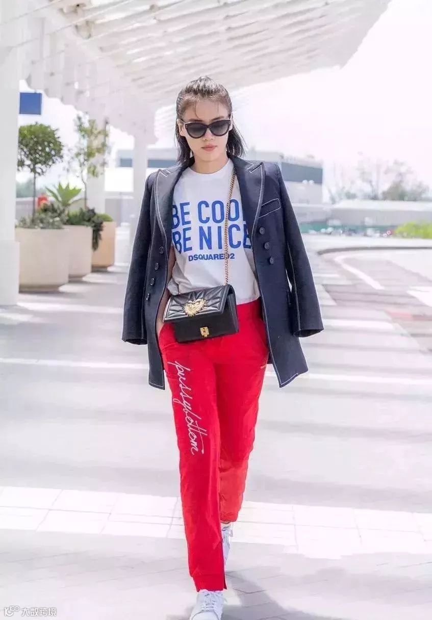 很多明星也非常喜欢内搭字母T恤穿,脚下配一双运动鞋,一股扑面而来的青春气息!