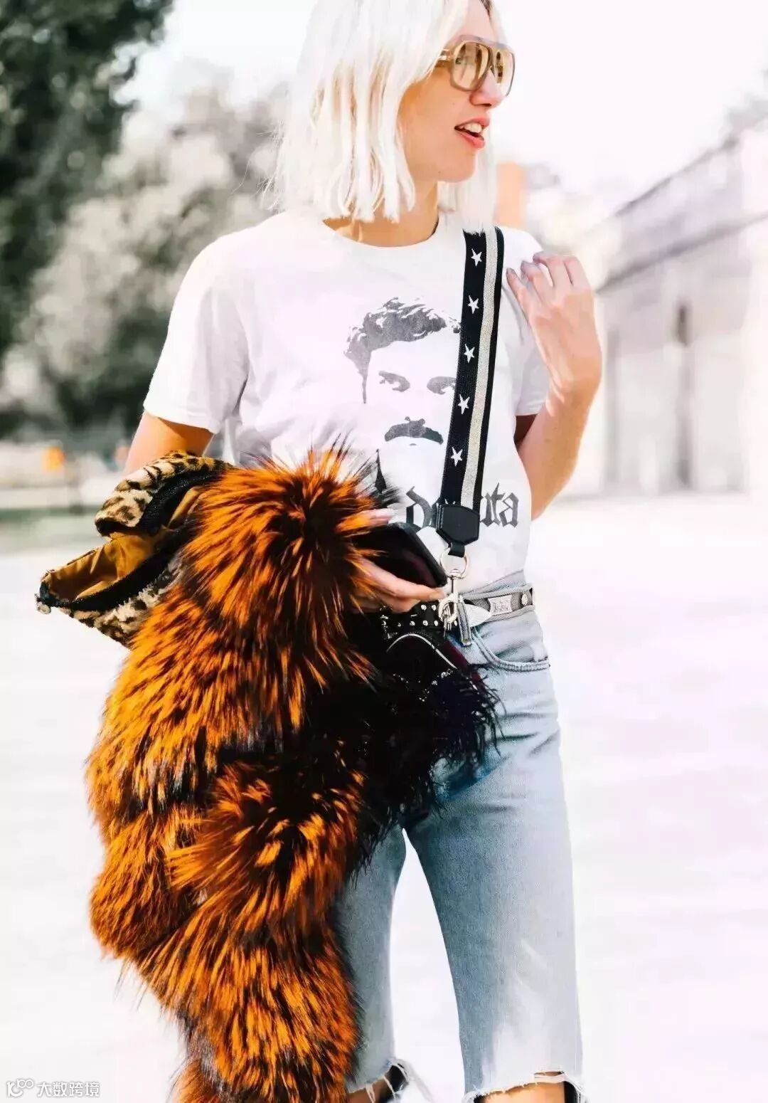 还有很酷的人头T,女孩子穿起来也是格外的帅气,尽显帅酷少女的feel。