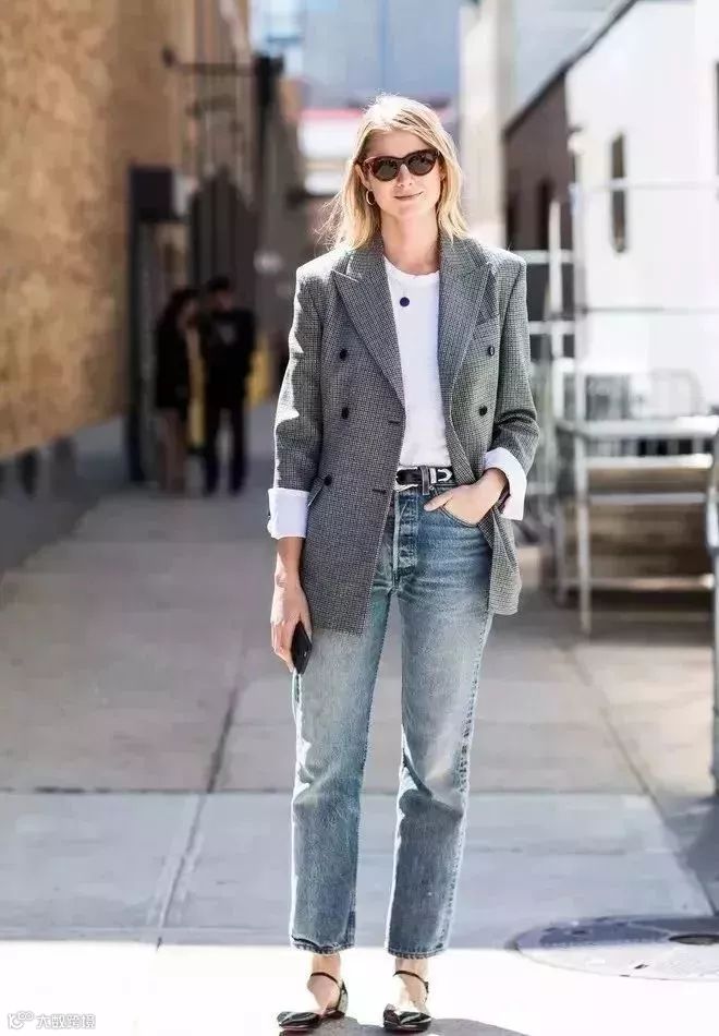 谁说西服只能搭配衬衫?那你就out了,想要与时俱进穿得更加时髦,不妨试试基本款的白T恤,搭配牛仔裤穿也是别样风情的OL风格。