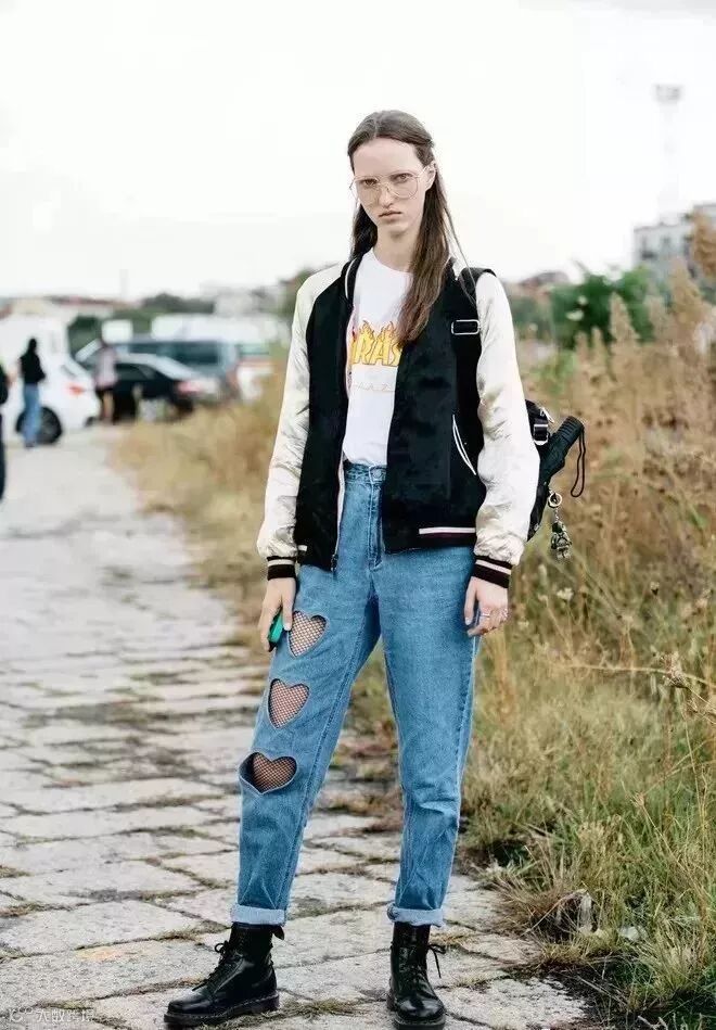 牛仔夹克、棒球衫内搭白T恤也是非常match的,白天脱去外套单穿也很好看。